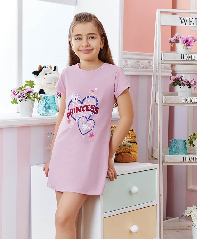 Туника для девочки, из эластичного х/б трикотажа, с красочным принтом "принцесса". Силуэт трапеция. Горловина отделана трикотажным кантом.