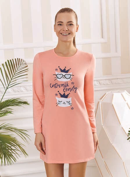 Туника для девочки из хлопка, классического кроя, с апликацией на груди. Длиный рукав.